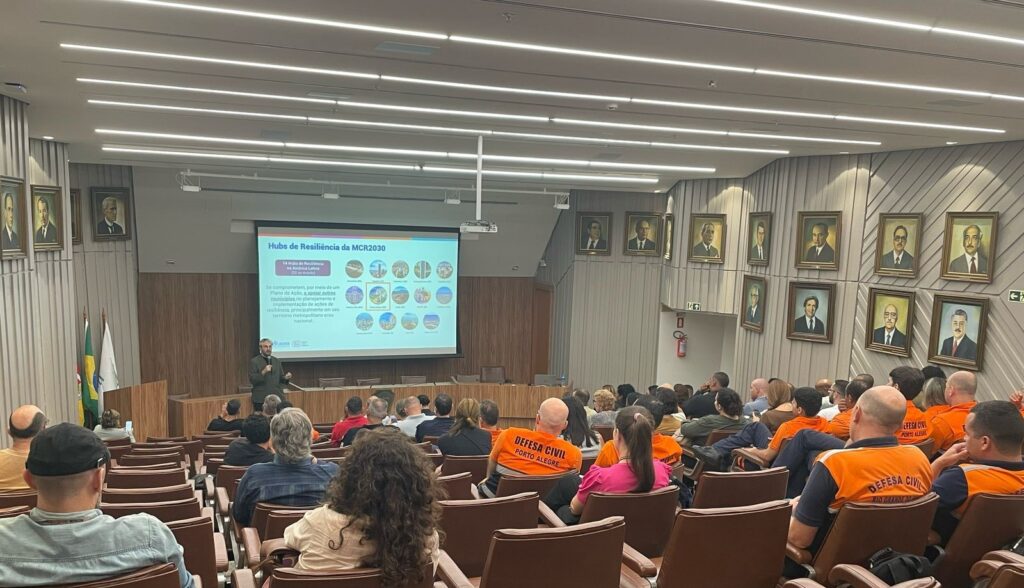 O plano de preparação em caso de desastres climáticos foi o tema central debatido no Workshop de Preparação e Mitigação de Desastres Climáticos e contou com a participação de municípios da Associação dos Municípios da Região Metropolitana de Porto Alegre (Granpal), realizado nesta terça-feira, 11, e quarta-feira, 12, no auditório da FARSUL, em Porto Alegre. O evento foi proposto pela Defesa Civil de Porto Alegre, reunindo representantes de órgãos municipais da região metropolitana com o objetivo de tratar temas relacionados a área de proteção e defesa civil. “Nosso objetivo é ter uma diretriz para que os municípios possam seguir e adaptar as suas realidades para essa temática de redução de riscos e atendimento das populações mais vulneráveis”, afirma Evaldo Rodrigues de Oliveira Júnior, diretor-geral da Defesa Civil de Porto Alegre. Ele completa que ao término do evento, sairá um encaminhamento para a instalação de núcleos comunitários de defesa civil junto às comunidades da cidade, principalmente em regiões que sejam suscetíveis a algum tipo de evento hidrológico ou geológico. O coordenador do Fórum de Defesa Civil da Granpal, Vanderlei Marcos afirma que a troca de aprendizado é fundamental para a qualificação de todos os municípios. Além disso, na quinta-feira (12) acontece uma reunião com as empresas que oferecem um serviço de monitoramento que foi implantado na capital. “A reunião será necessária para que possa haver uma adesão dos municípios e assim ter um padronização de monitoramento de previsões do tempo”, finaliza.