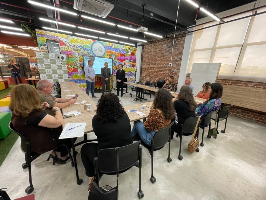 Escola de Gestão da Granpal realizou workshop sobre fomento de parcerias público-privadas. O encontro ocorreu em espaço do Banrisul no Instituto Caldeira, ontem, 07. Na abertura o diretor executivo da Granpal, Pedro Feiten, destacou o foco da entidade em auxiliar os municípios no fortalecimento de políticas públicas e avanços de governança. A atividade contou com a condução de Pedro Capeluppi e Gabriel Fajardo, respectivamente secretário titular e secretário adjunto da Secretaria de Parcerias e Concessões do RS. A Secretaria tem edital aberto para apoio a projetos dos municípios gaúchos, podendo contemplar tanto novos projetos como aqueles eventualmente estejam em andamento. O prazo para os municípios apresentarem projetos vai até 6 de dezembro. Mais informações podem ser encontradas no link: https://parcerias.rs.gov.br/impulsiona-rs Os municípios também podem solicitar auxílio através do e-mail: impulsionars@separ.rs.gov.br No encerramento, o Coordenador de Gestão da Granpal, Julio Dorneles, agradeceu a participação dos municípios que integram o Consórcio Metropolitano da entidade, que compareceram e interagiram durante o evento.